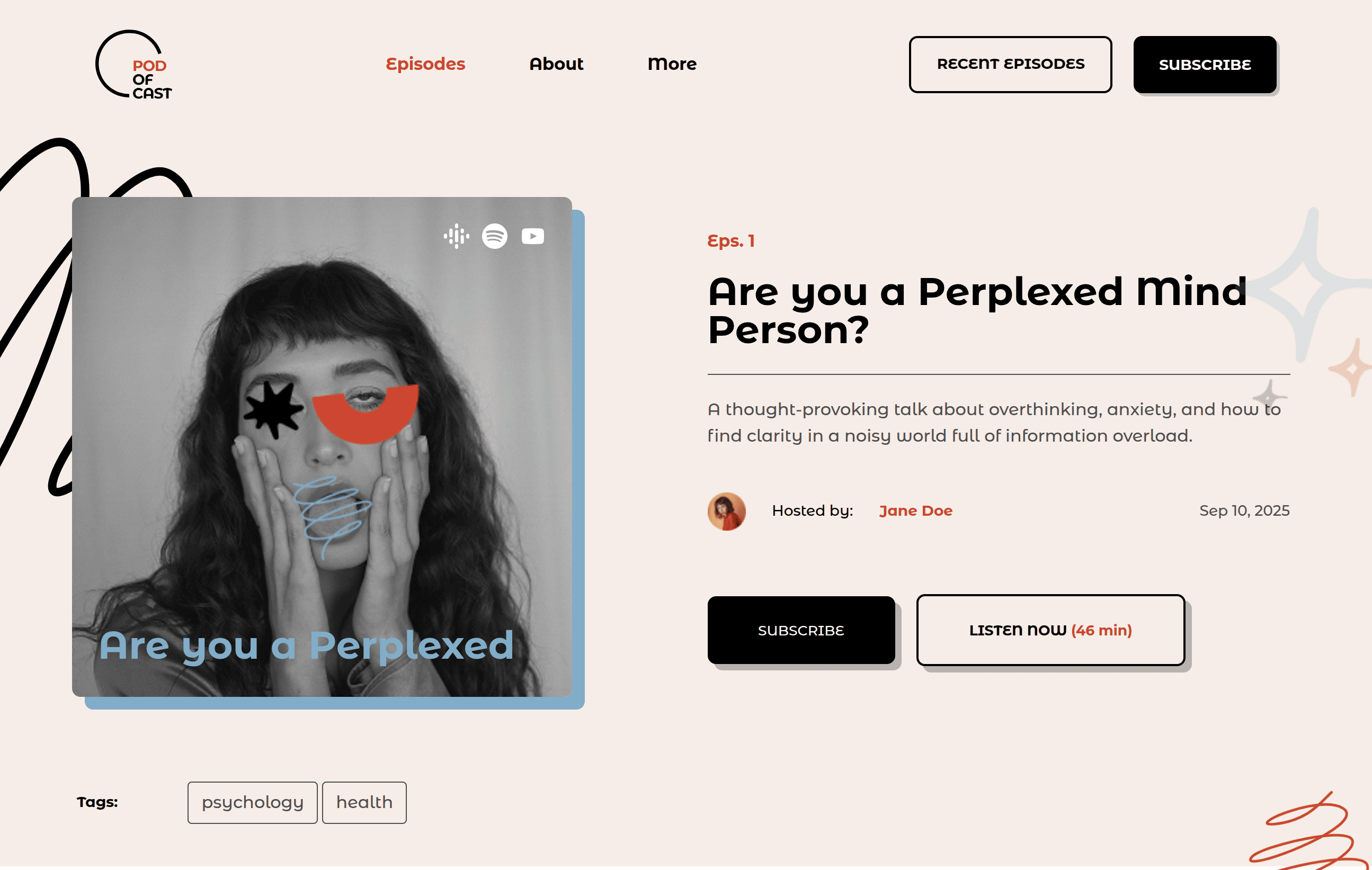 A multi-page website for a podcast project, featuring episode listings, media playback, and structured content for audience growth and engagement.